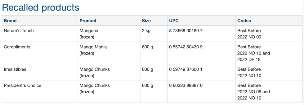 A frozen mango recall has been issued by the Public Health Agency of Canada (PHAC) due to a possible Hepatitis A contamination.