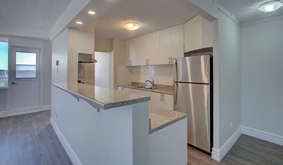 You can't beat the price of these two-bedroom units, which also feature in-suite laundry and a dishwasher. The building has a pool and gym too, so you can stay in shape while paying less every month.