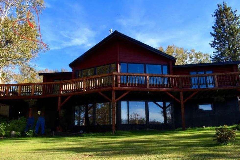 Description: It's all about the view! This stunning yet cozy log home has a wall of windows for you to take in the view of the water while curled up by the fire.
