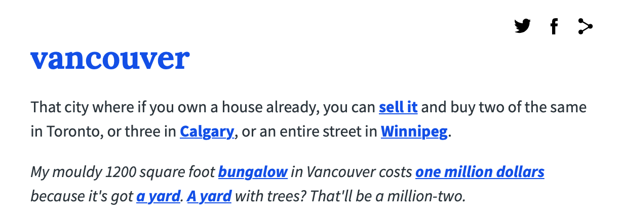 It's fair to say that property costs here are sky-high, so we may have to allow this one. Sorry, Vancouver!