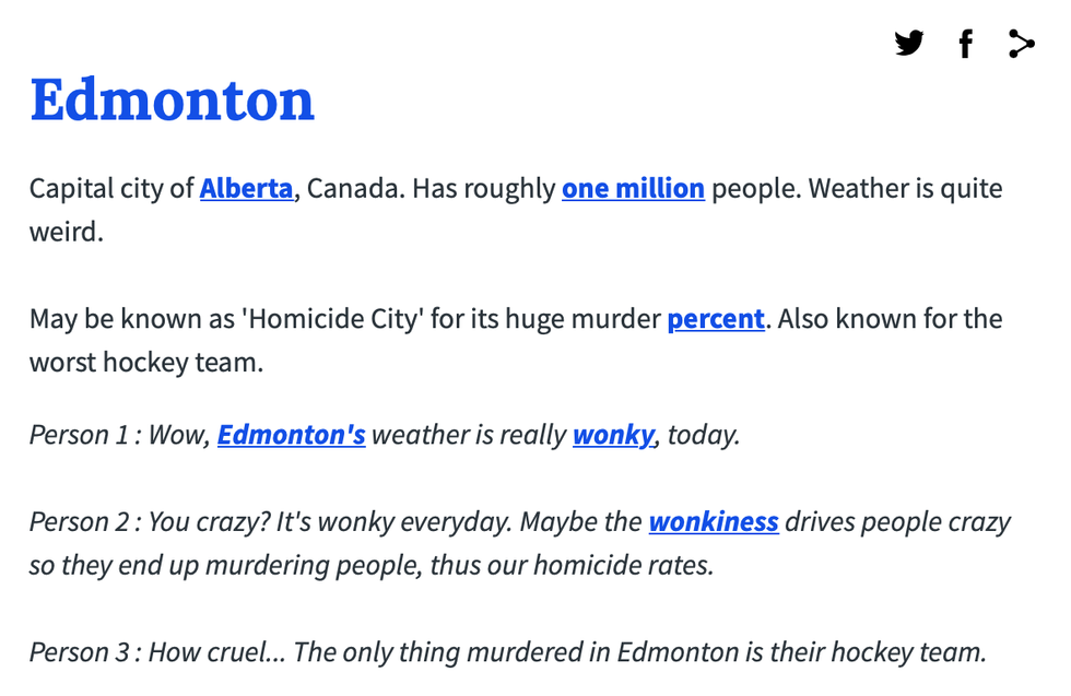 Somehow this definition of Calgary roasts Edmonton and Toronto simultaneously instead. Oops!