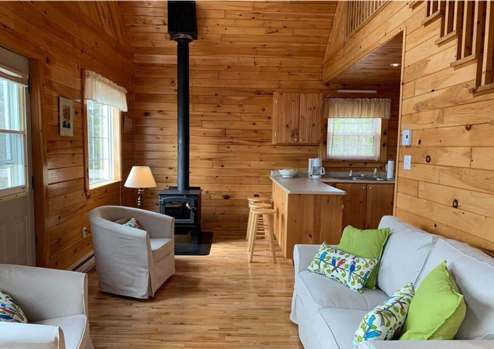 Fully-equipped with a romantic woodstove, there would be no better place to cuddle up and enjoy the scenic views of the snow-covered trees and frosty river that surround you.
