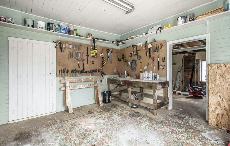 In the garden, there’s a building that was once a local store, which is now used as extra storage space. There’s also a heated workshop area, too.
