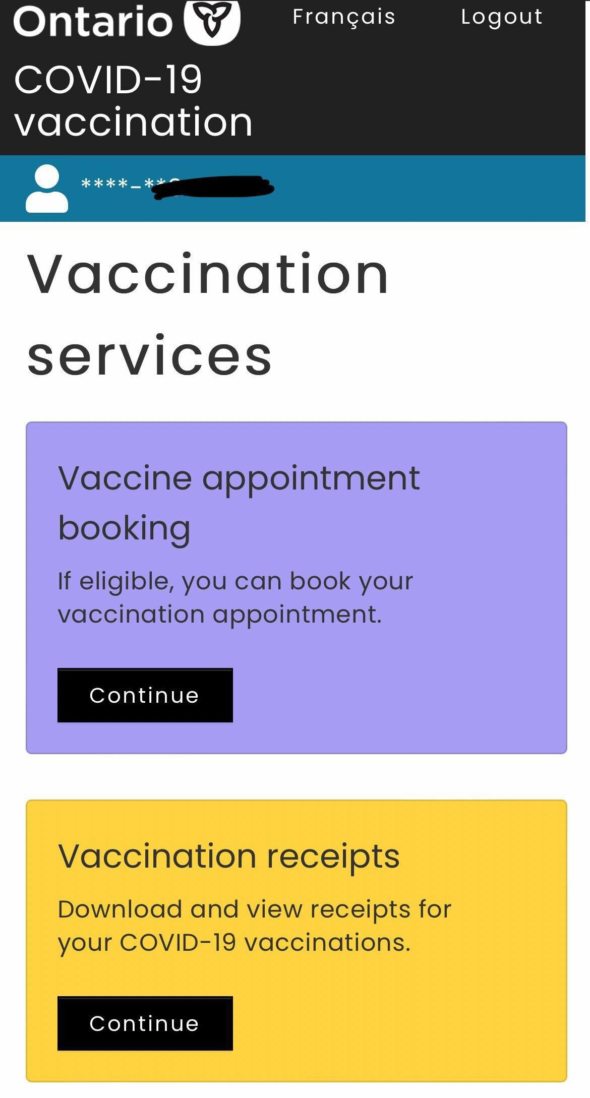 6. Next, you'll get two options: one for booking a vaxx appointment and another to access your vaccine receipts.
