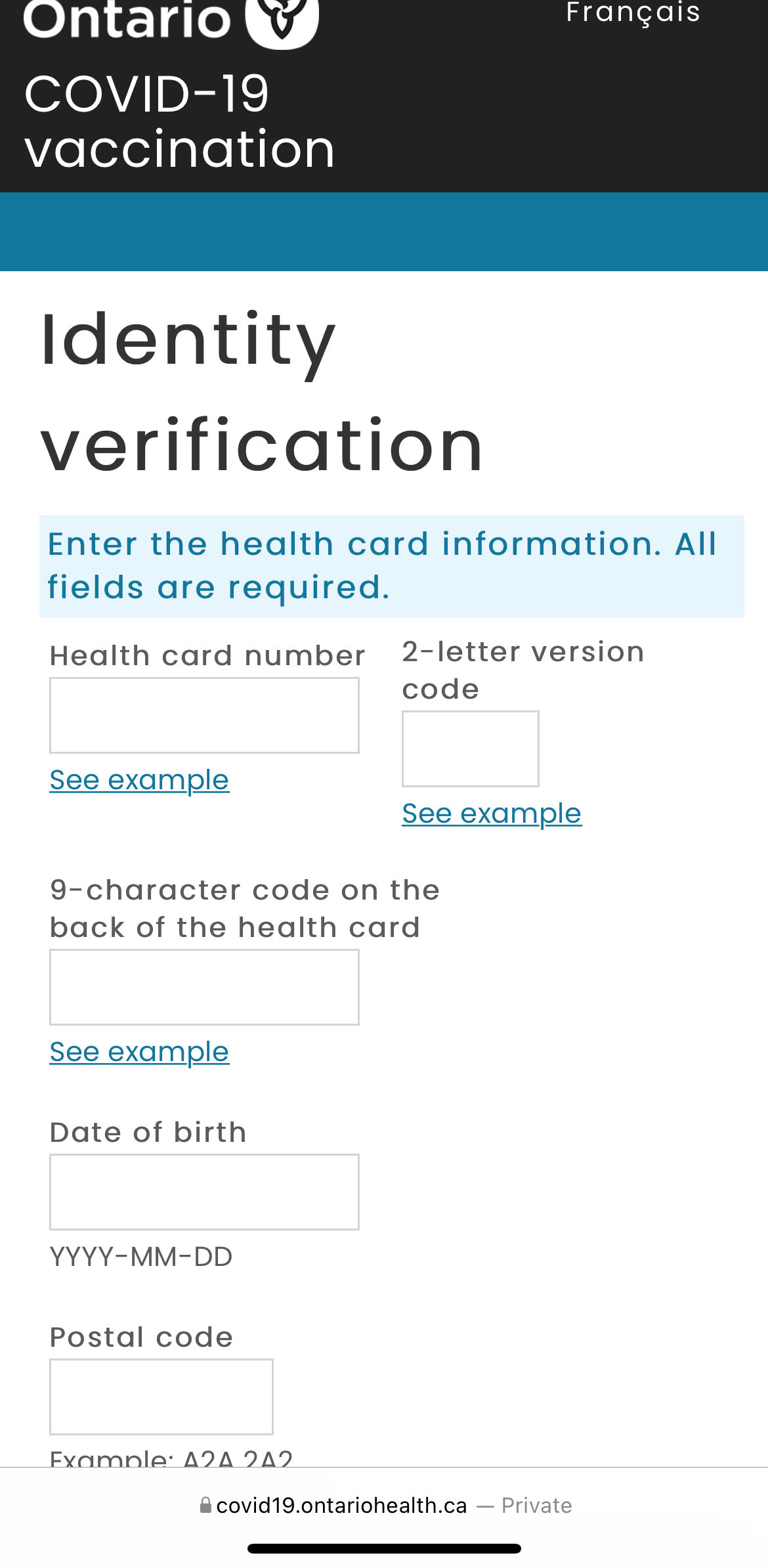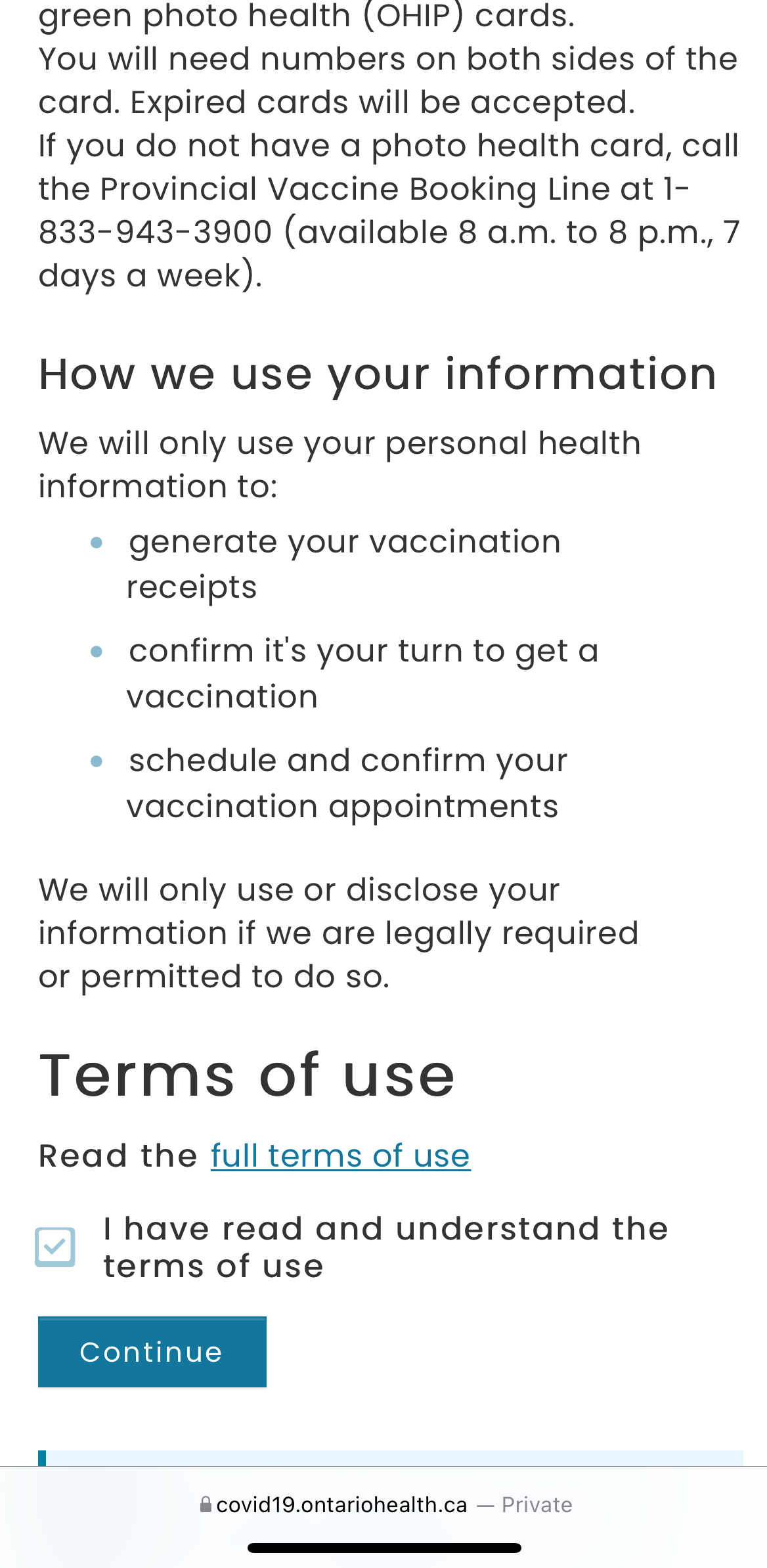 1. Grab your health card and visit this link on your phone's browser to begin.