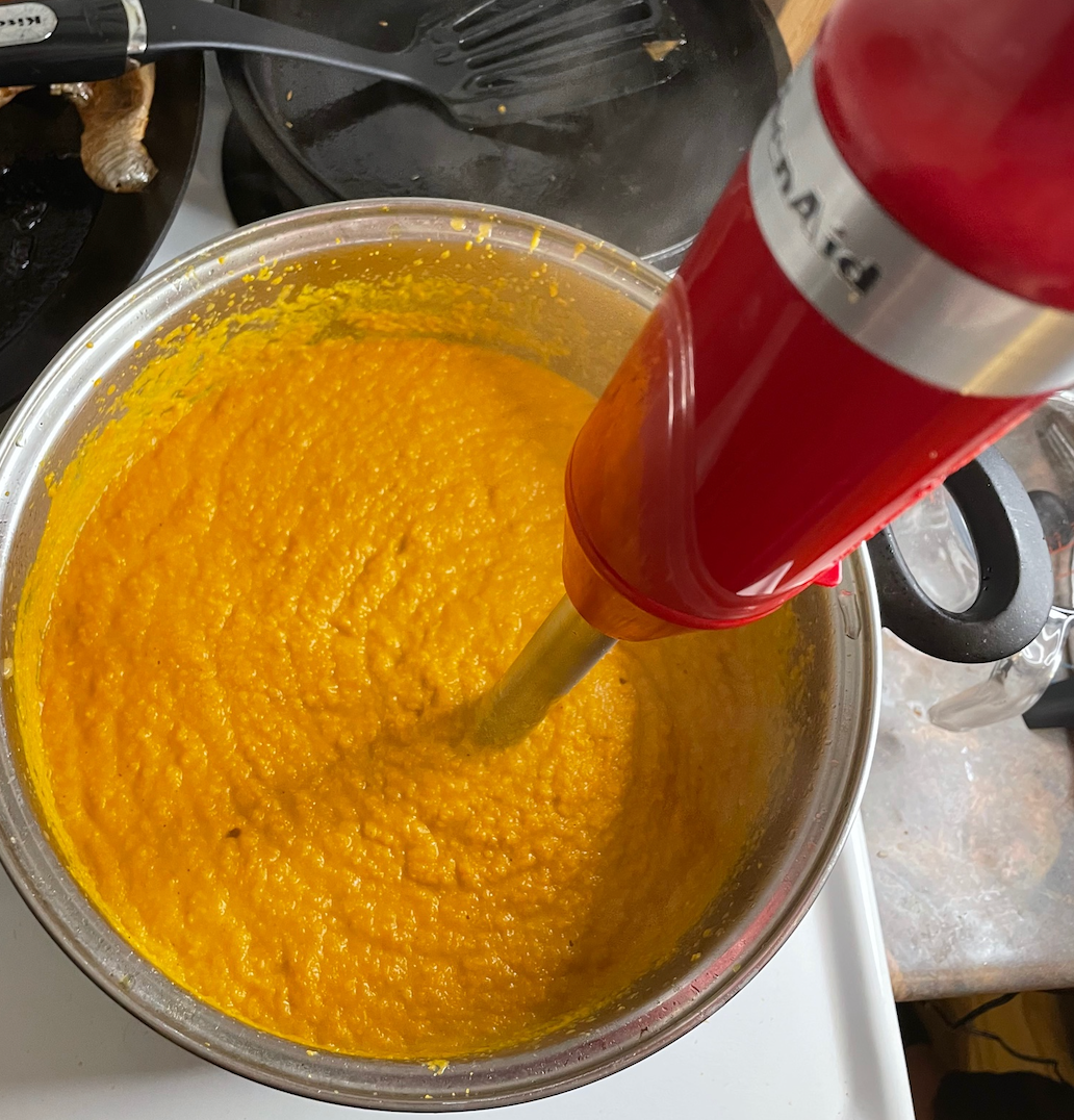 I love that I didn't need to transfer my hot soup into another container to get it all blended up. And what's even better? That I didn't have to move the hot pot off of the stove to reach an outlet that works!