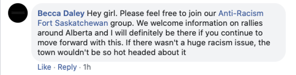 A Facebook group called Central Alberta Against Racism has started. There are over 500 members.