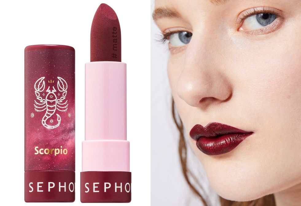 Details: Scorpios can be intense and bold and so they need a lip colour to match! This oxblood-coloured lipstick is vegan, lightweight and dries down matte.