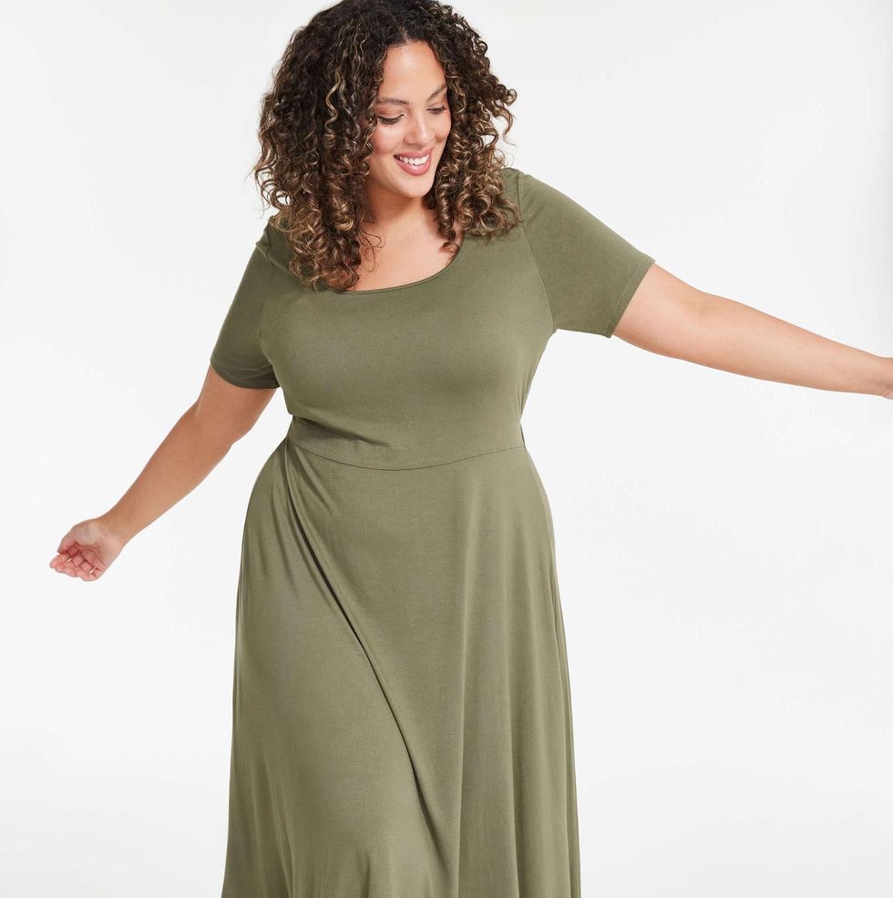 Details: As leaves start to fall, you're probably going to be wearing a lot more earthy green hues. You can add this olive-coloured dress (which also comes in black) to your rotation since it's so comfy and affordable.