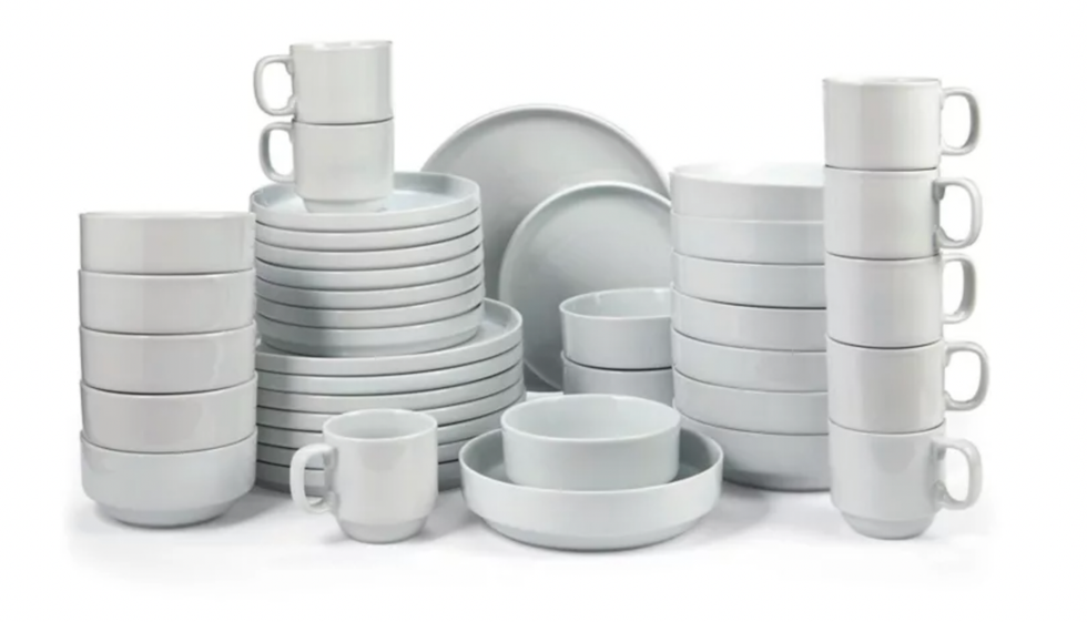 Details: This is an incredible deal here because for 70 bucks you're getting 40 pieces of dinnerware including salad plates, mugs and bowls.
