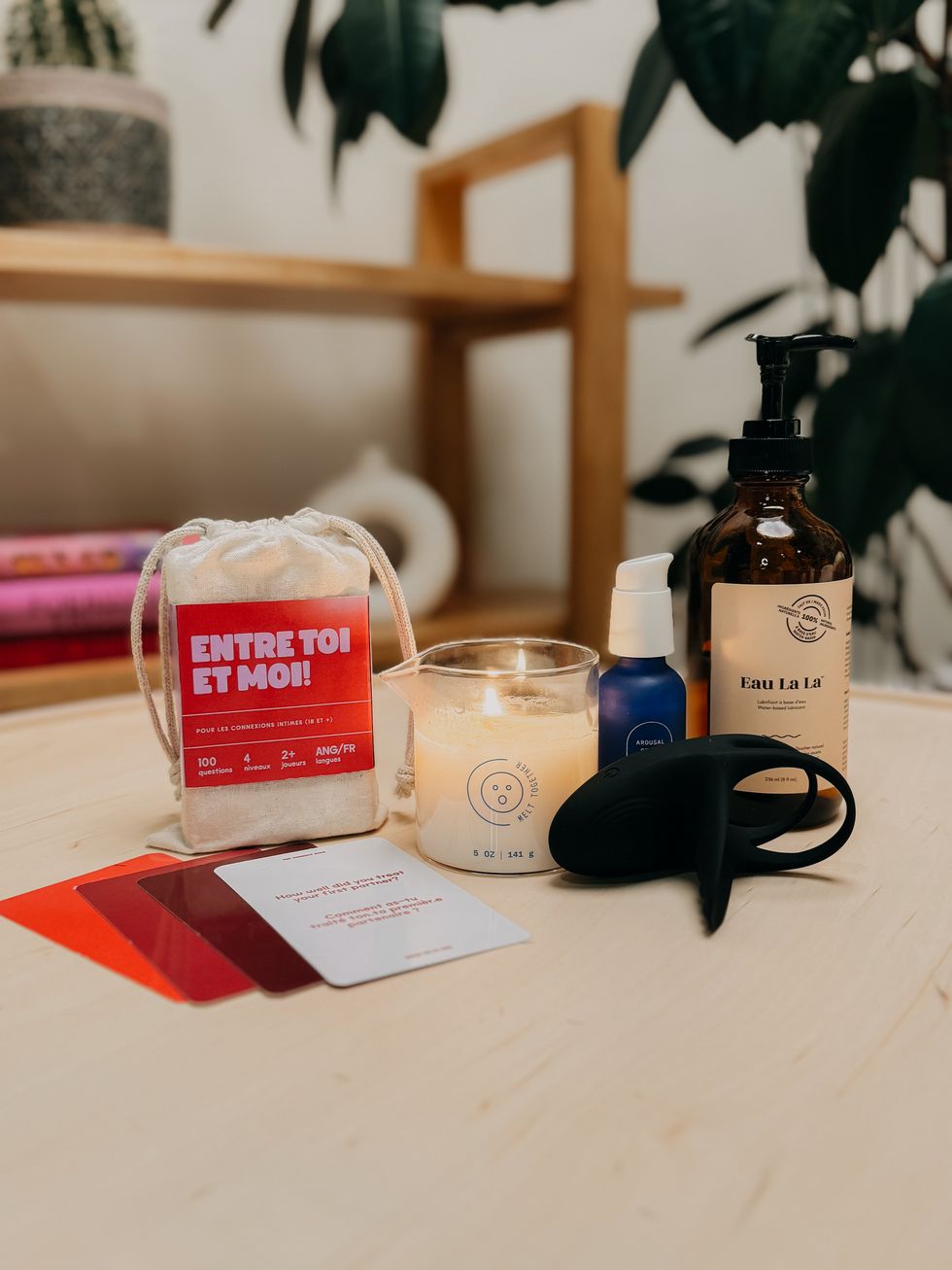 A thoughtful collection of goodies from LEO Plaisir come together in the Kinky date night set. A vibrating toy, massage candle, lube, stimulating serum, and thought-provoking card game help couples give each other the gift of intimacy.