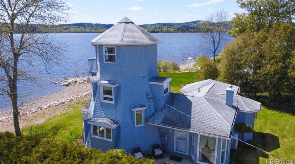 Located in Rothesay, New Brunswick, there’s a lighthouse-inspired home for sale that’s as close to the beach as possible.