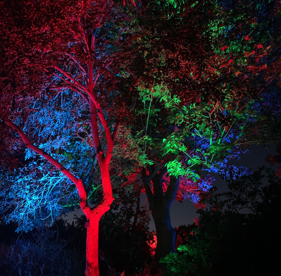 The colorful lights will be placed amongst the trees and plants, illuminating them in all different colors, to make you feel like you are under a psychedelic sea.