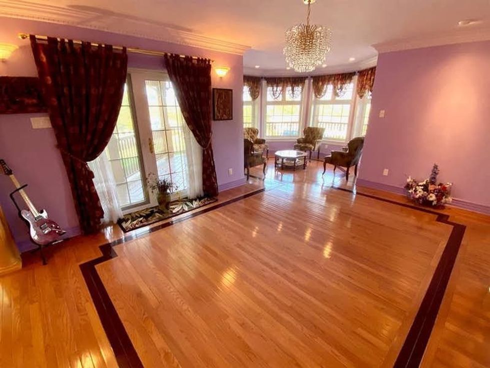 Inside, the house is grand, with high ceilings, chandeliers, and ornate doorways. However, if purple's not your colour, you may be looking at a paint job.