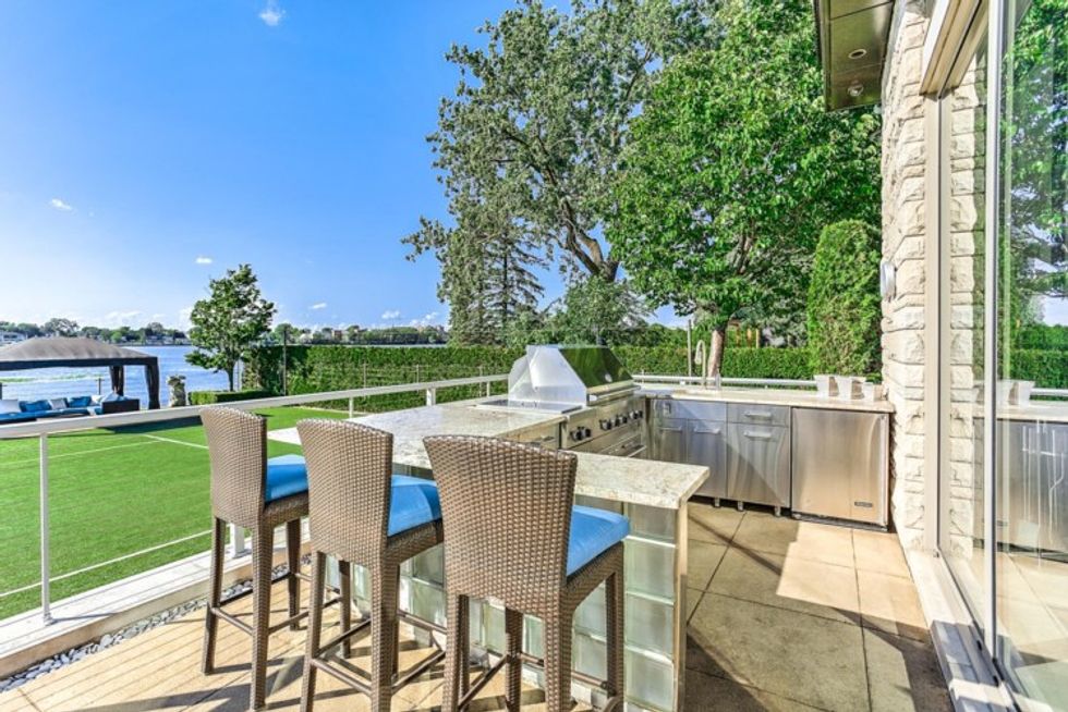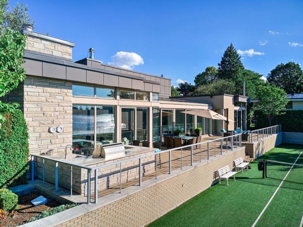 Une seconde cuisine est aménagée dans la cour, tout près du terrain de tennis. Deux espaces patio s'y retrouvent également et sont parfaits pour se prélasser et prendre un verre en regardant les couchers de soleil sur l'eau.