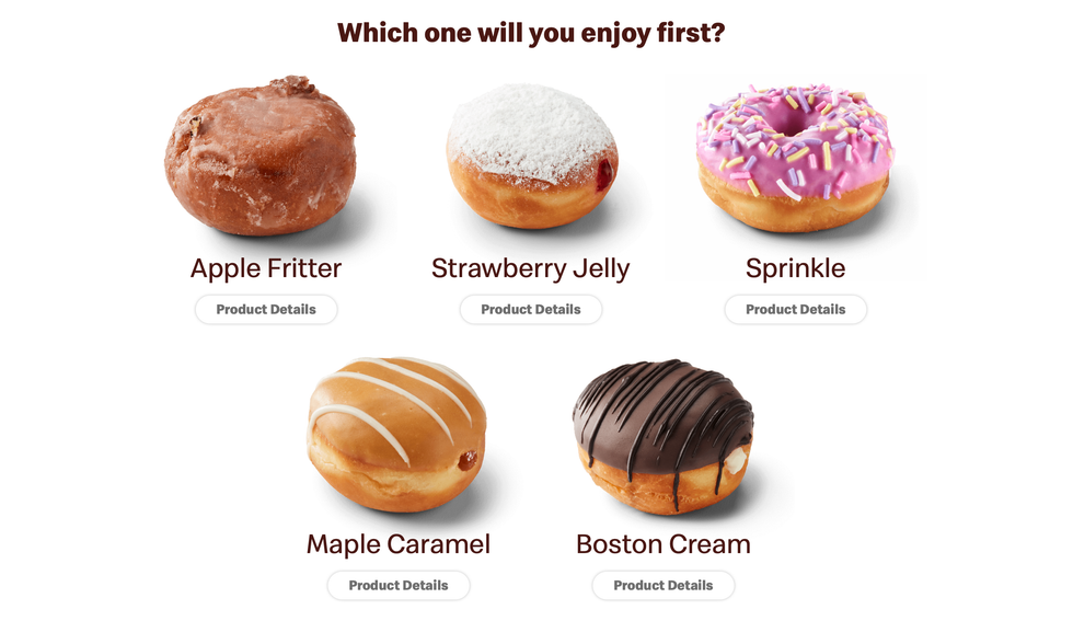 There's also "delicately dusted" Strawberry Jelly, "decadently delicious" Maple Caramel, and a Sprinkles donut that will "feed your inner child."