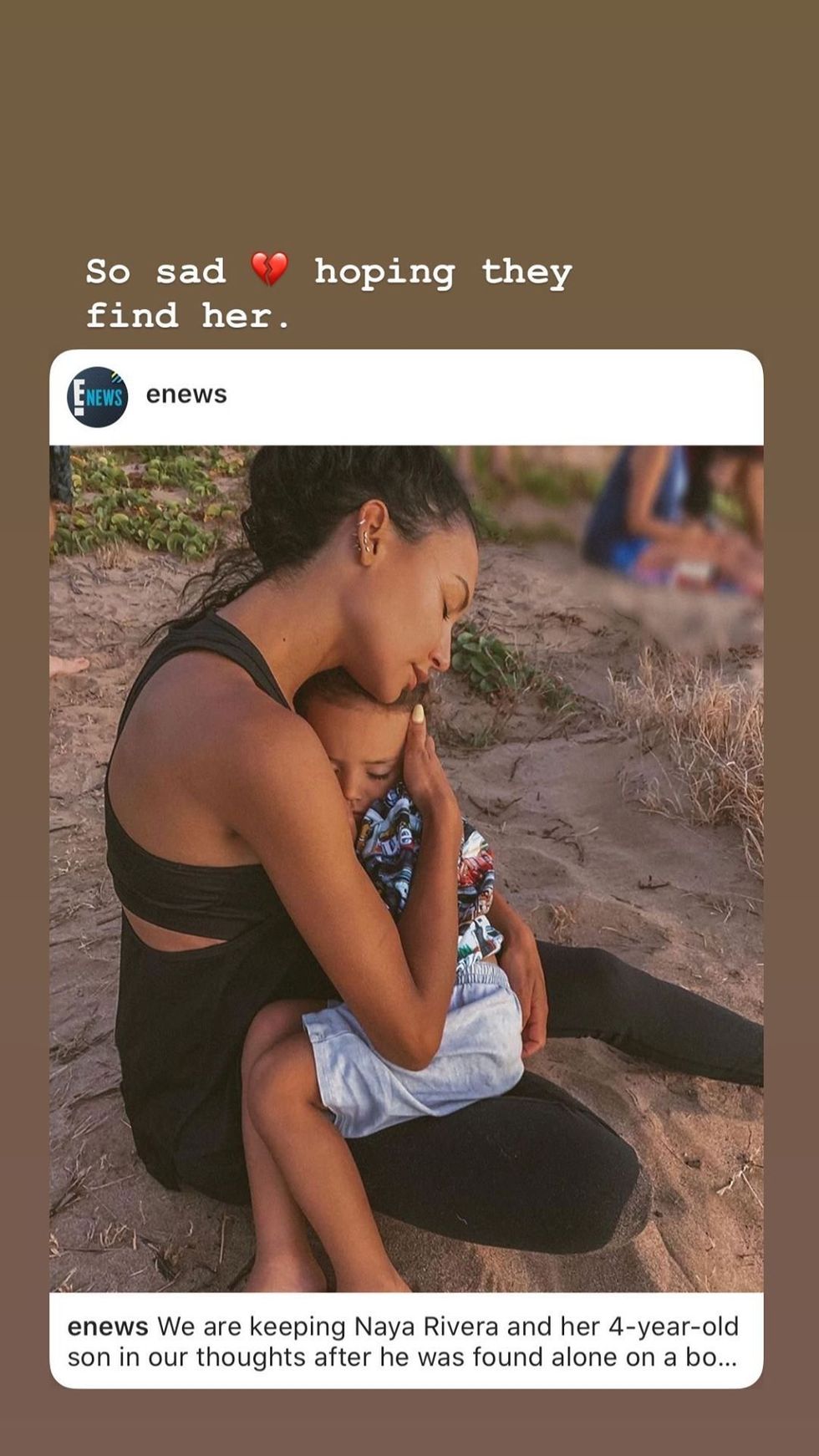 In the search, they found the 4-year-old asleep on the boat and Naya was "nowhere to be found." While her son was wearing a life jacket, the other life jacket was found in the boat.