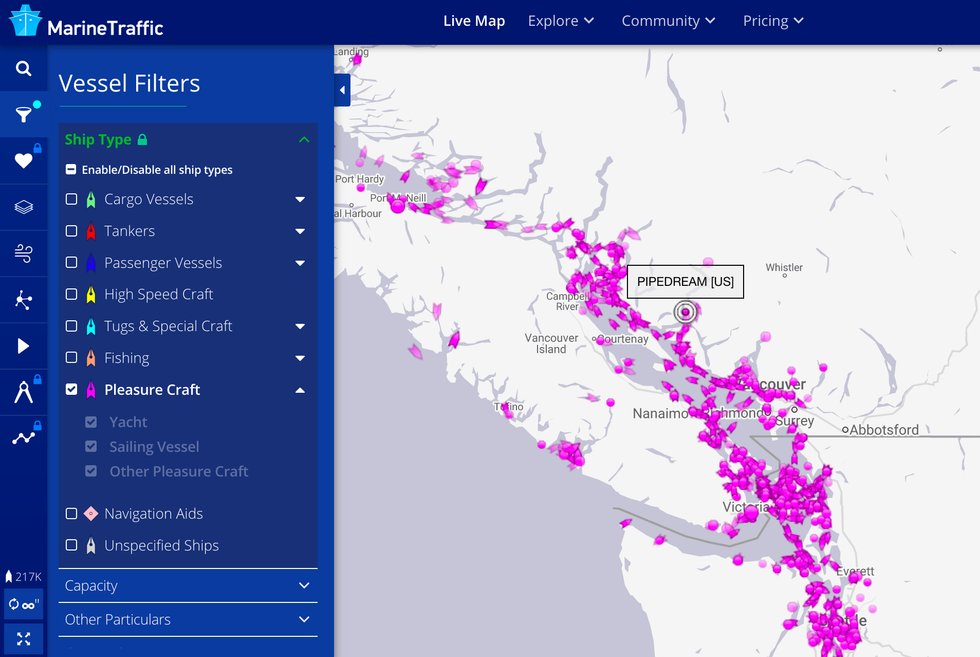 When we looked through their tracker, we found at least six separate U.S. pleasurecraft — such as yachts — around the B.C. coast and some had Alaska written as their destination.