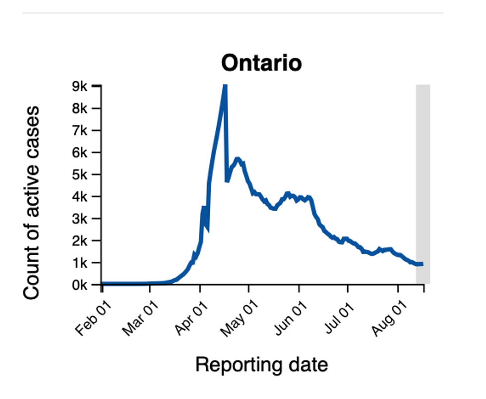 While there have been positive signs that the curve is flattening in Ontario, the province saw a spike on August 18.