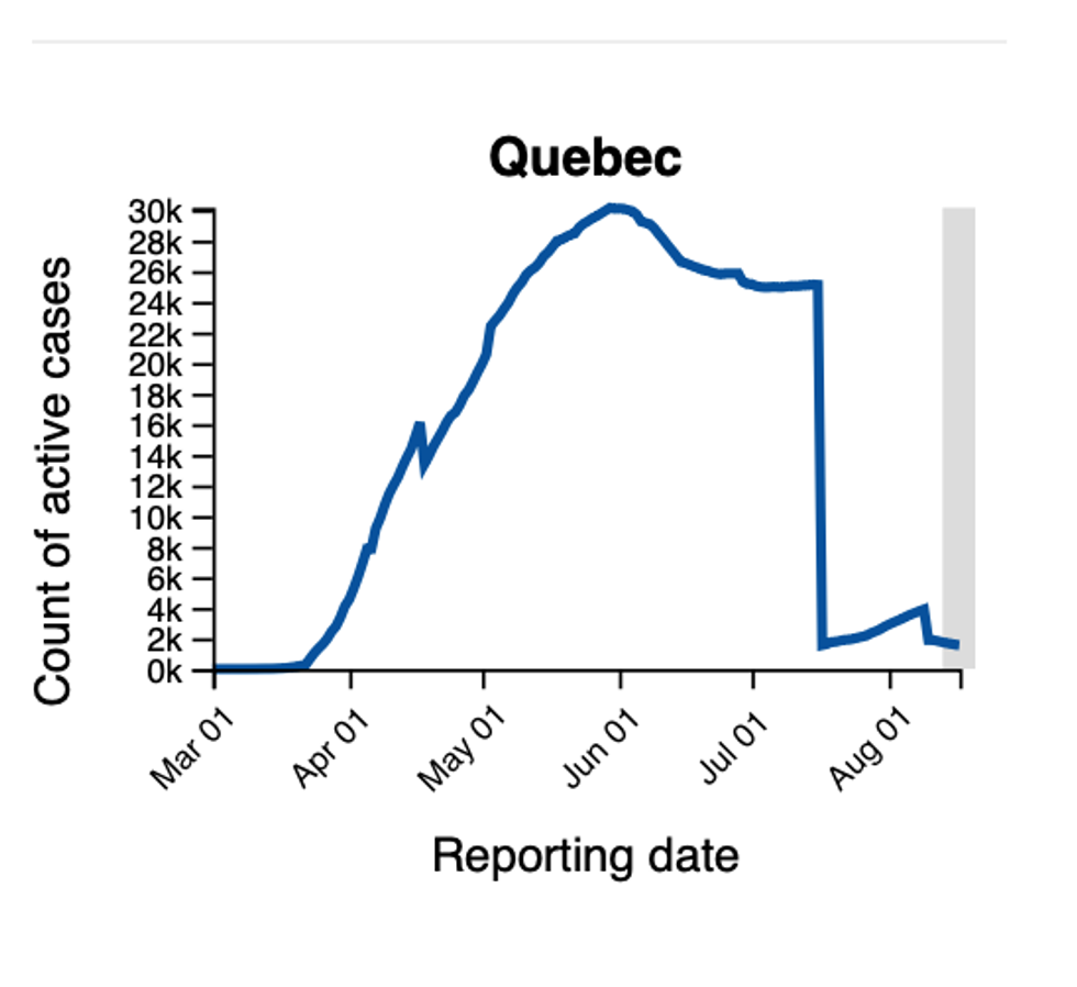 Despite having the highest number of total COVID-19 patients in all of Canada, Quebec has been reporting comparatively low numbers for several days.
