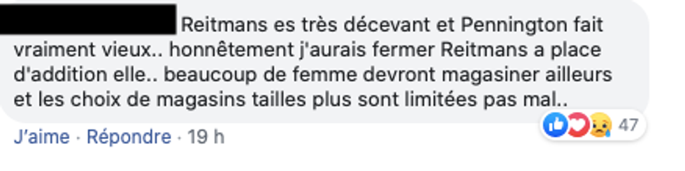 Certaines auraient, quant à elles, préféré voir Reitmans fermer à la place d'Addition Elle.