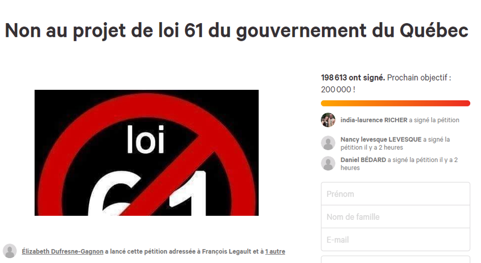 Loi 61 : une pétition de 200 000 signatures sera déposée à l'Assemblée nationale