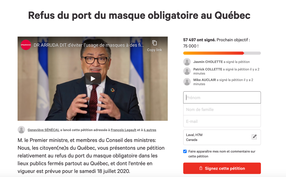À partir du samedi 18 juillet, le masque sera obligatoire dans les lieux publics fermés du Québec. Cette nouvelle mesure ne fait toutefois pas l'unanimité, comme en témoigne une pétition contre le port du couvre-visage obligatoire qui circule cette semaine.