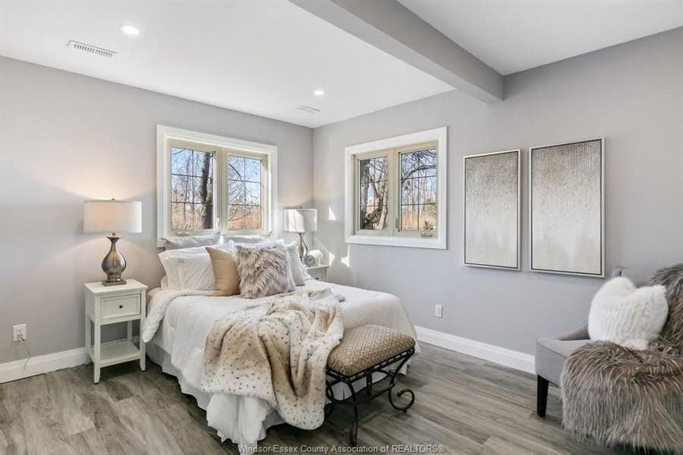 Located in Windsor, the $389,900-house sits on a tree-covered lot surrounded by water.