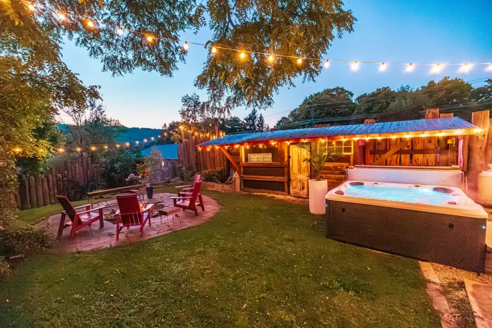 You'll want to soak in the hot tub, which boasts mountain views and starry skies. There's also a fire pit where you can toast some gooey marshmallows.