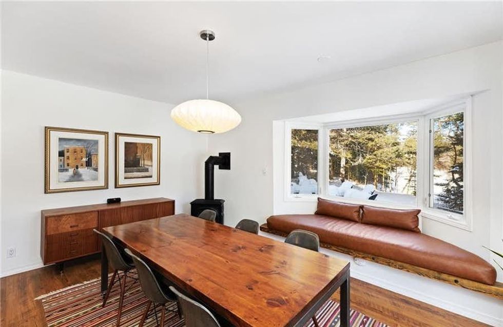 But the coziest spot is the large window seat near the fireplace, as it would be perfect for reading a book.