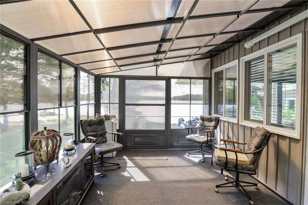 The indoor space is surrounded by windows, giving you a panoramic view of the outdoors while keeping you sheltered from the cool evening temperatures.