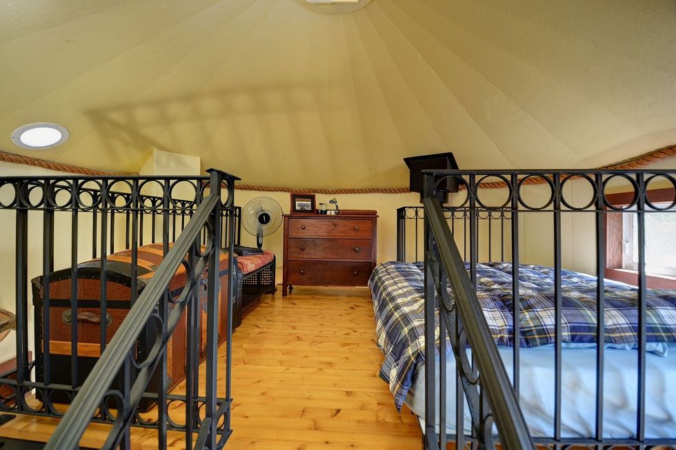 The property features a cottage made out of a renovated grain bin, and the interior is brimming with fairytale vibes.