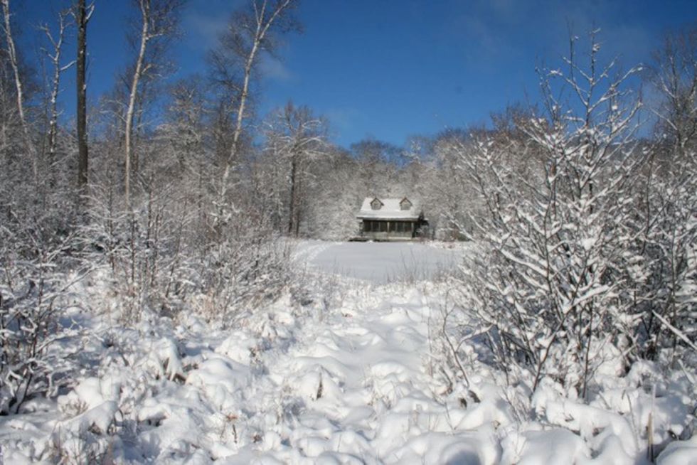 Why You Need To Go: Gaze across a private frozen lake at this festive off-grid cabin in the bush.