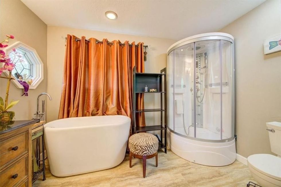 Originally built in 1979, this picturesque bungalow sits on the shores of a small lake in the Lake Washington area, stretching out over the water on stilts. With 3.33 total acres of property, the home features three bedrooms and two and a half baths.
