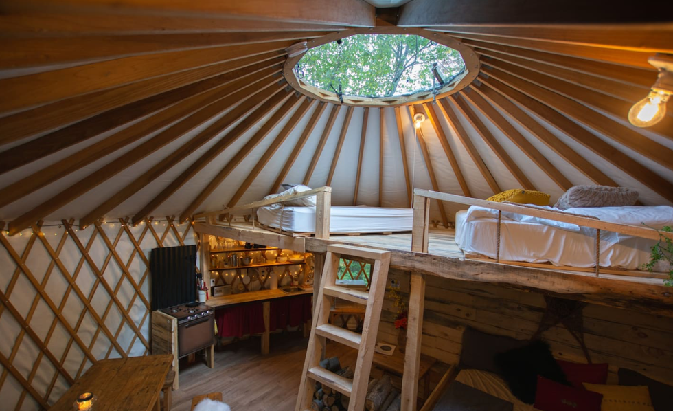 The yurt has a huge, circular window at its peak, allowing you to embrace the pitch-black sky and peek out at the airspace above.