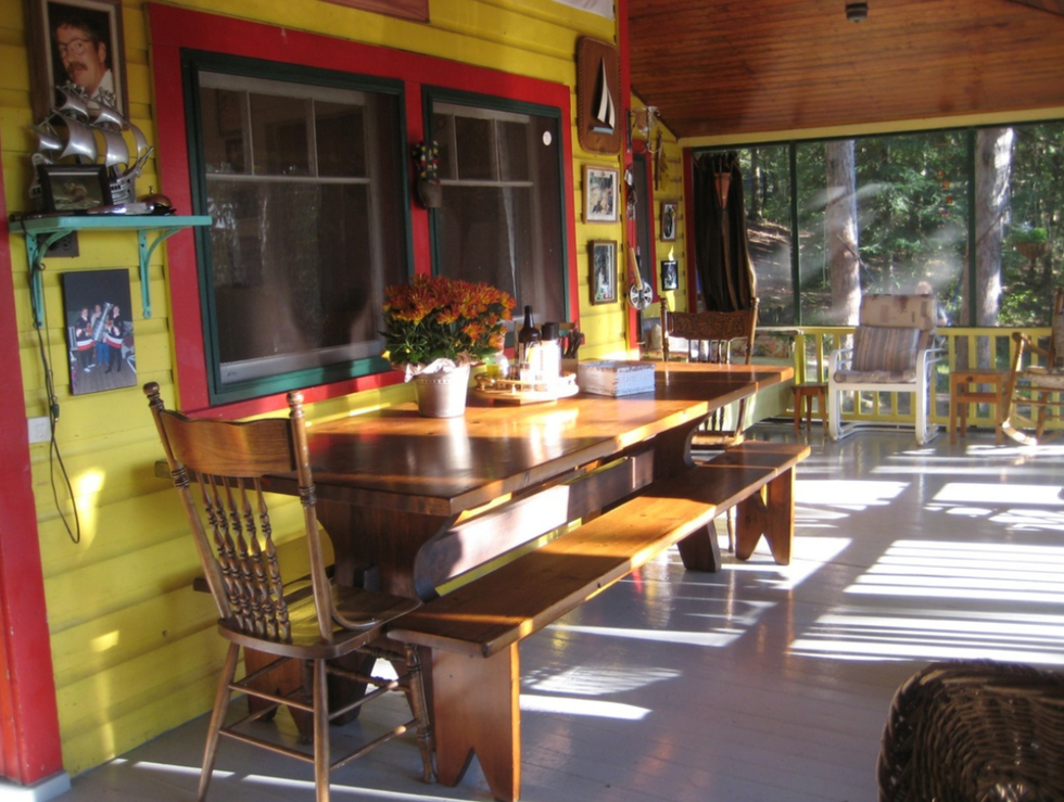 Within the screened-in veranda, you’ll find a gorgeous eight-foot pinewood table where you can feast well into the evening.