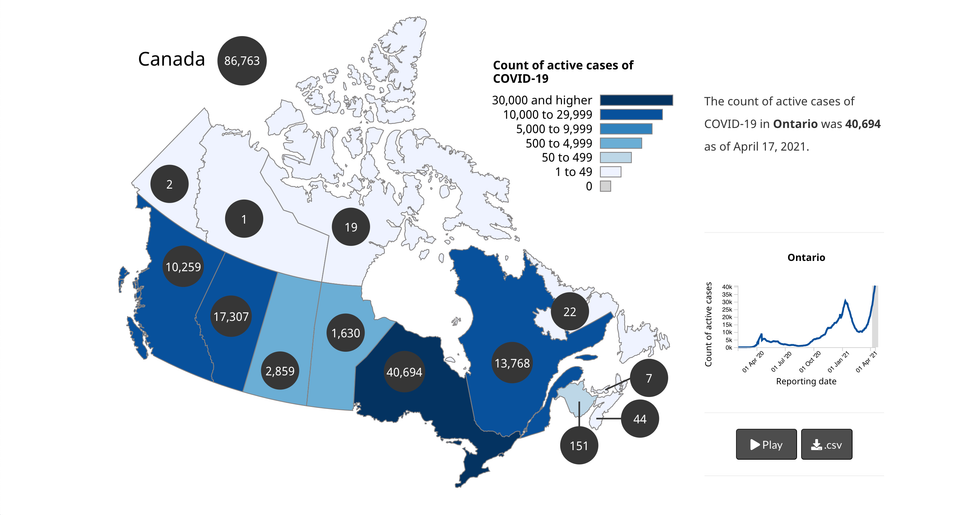 As of Saturday, April 17, Ontario had more than double the number of cases than anywhere else in the country, with officials recording 40,694 active cases of COVID-19.