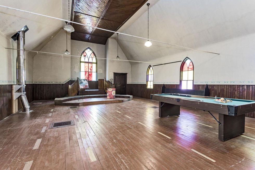 Description: This charming church has been converted into a two-bedroom home, and the inside looks so different.