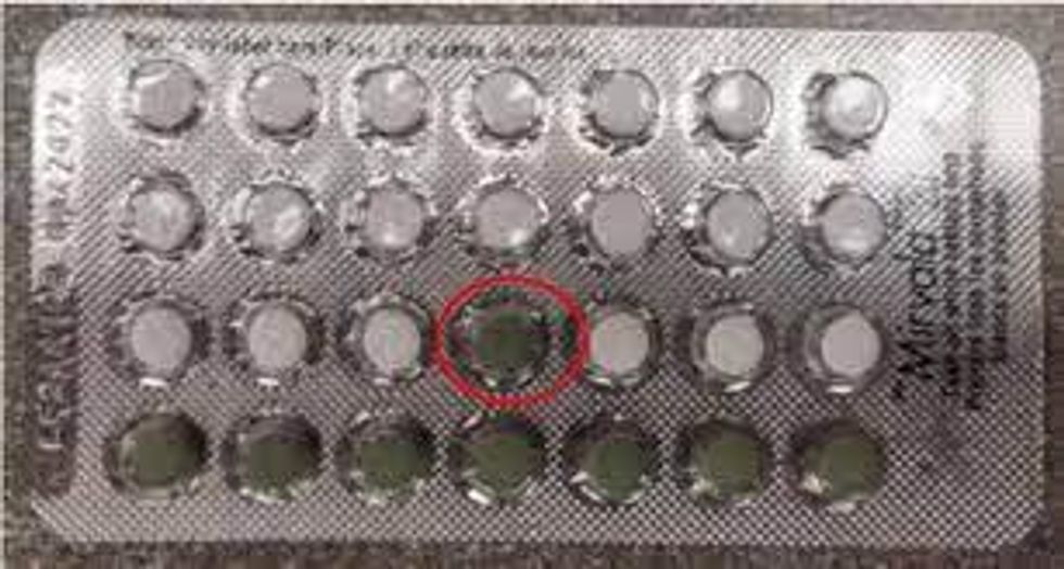 The recall warns that "the blister pack may contain a placebo (green) pill in place of an active (white) pill."