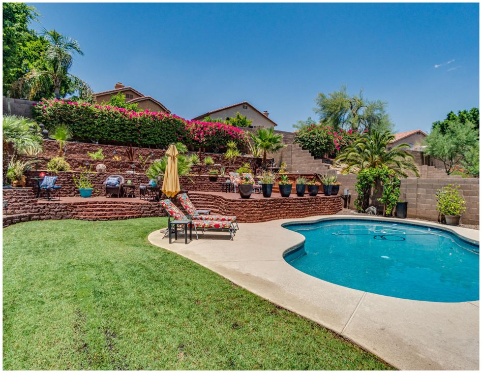 Description: With a courtyard entry and stunning backyard oasis, this four-bedroom home consists of 3,501 square feet and endless desert views.