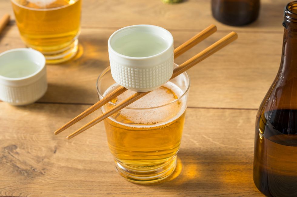 To make it, pour three and a half ounces of a light beer into a pint glass (Korean Cass Fresh or Hite are perfect, if you can find them). Add one and a half ounces of soju to a shot glass. Place two chopsticks on top of the pint and the shot glass on top of the chopsticks. Now comes the fun part: slam your hands down on either side of the glass to drop the shot in. Enjoy!