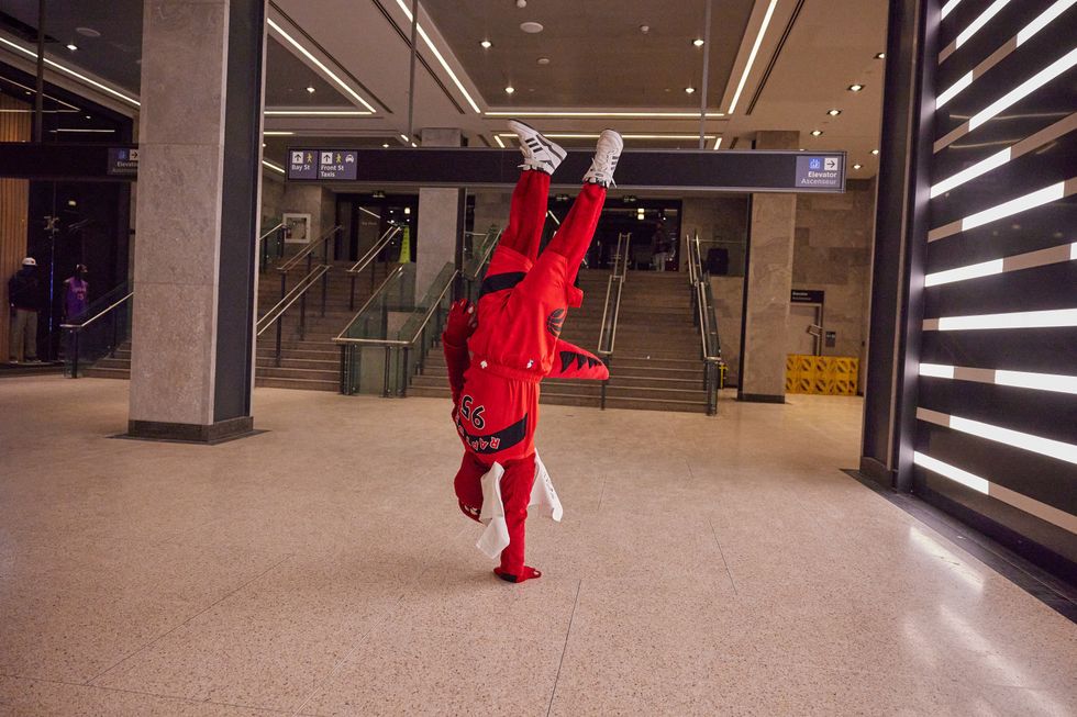 At Union Station, with renowned DJ and Raptors fan Devo as his handler and hype man, the Raptor offered his body for sniffs to anyone willing to lean in and get a whiff. Time after time, it was confirmed — the Raptor still smelled fresh.
