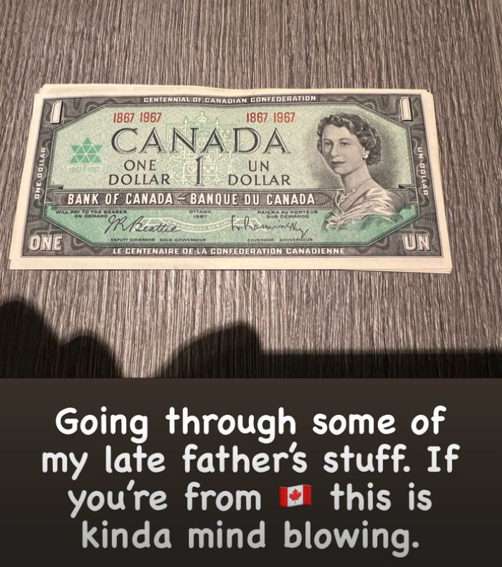 "Going through some of my late father's stuff," he wrote on his Insta story. "If you're from 🇨🇦 this is kinda mind blowing."