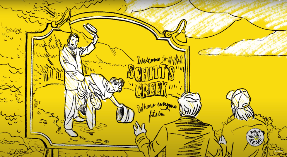 "We had this running gag of our town sign where the joke was, you know, the couple on the town sign looked like they're having sex," the actor behind David Rose explained. "In actuality, it's just a sister bending over to get some water and the brother behind her but the illusion is something sexual."