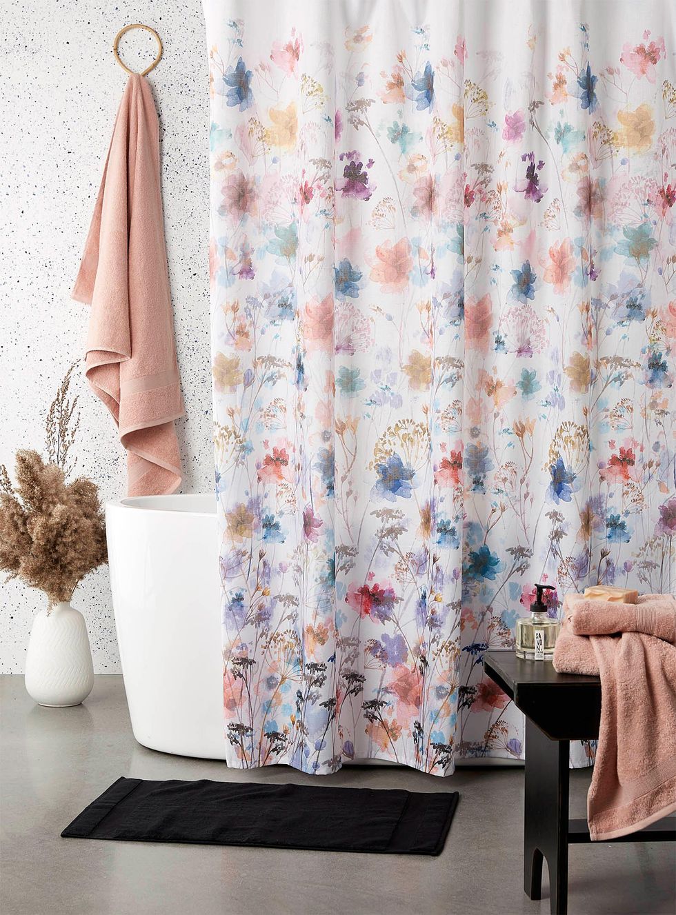 Details: Getting a new shower curtain is an easy way to upgrade your bathroom. It has a delicate floral pattern that will add a pop of colour to the small space.