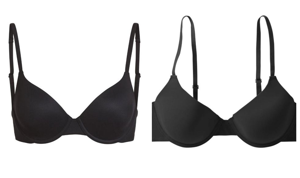 Details: A good quality, comfy bra is an essential item to have in your wardrobe. The SKIMS T-Shirt Bra (left) costs a whopping $62 more than the nearly identical one from Joe Fresh (right).