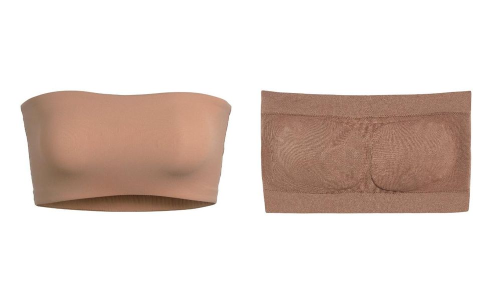 Details: The SKIMS Fits Everybody Bandeau Bra (left) and Joe Fresh dupe (right) are great for either wearing alone or under a top. The Joe Fresh version offers removable pads and will save you $34!