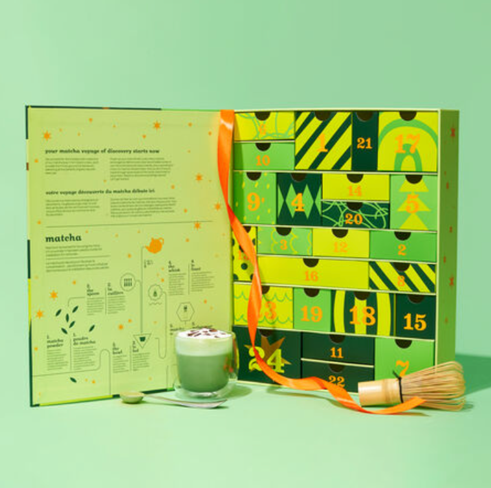Détails : Ceux qui préfèrent le matcha aux thés festifs sont gâté.es avec 24 jours de matcha! Matcha à la banane, Matcha à la canne de bonbon, Matcha biscuit au sucre et Matcha au lait de poule sont des exemples des saveurs que tu retrouveras. Ici aussi, DAVIDsTEA promet deux portions par case!