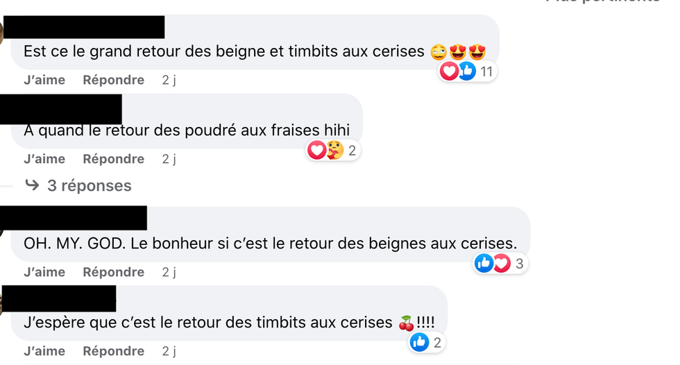 Tim Hortons pourrait au moins nous le laisser en Timbits aux cerises comme avant, non? Ce serait la moindre des choses. On pourrait même laisser aller ceux au chocolat glacé qui finissent toujours par sécher au fond de la boîte!
