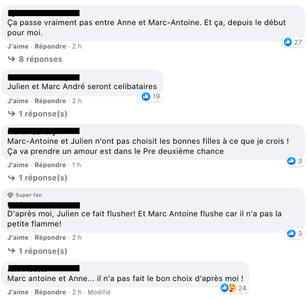 Sur les réseaux sociaux, les fans s'entendent aussi pour dire que les duos Anne et Marc-Antoine et Chloé et Julien ne semblent pas finir la course.